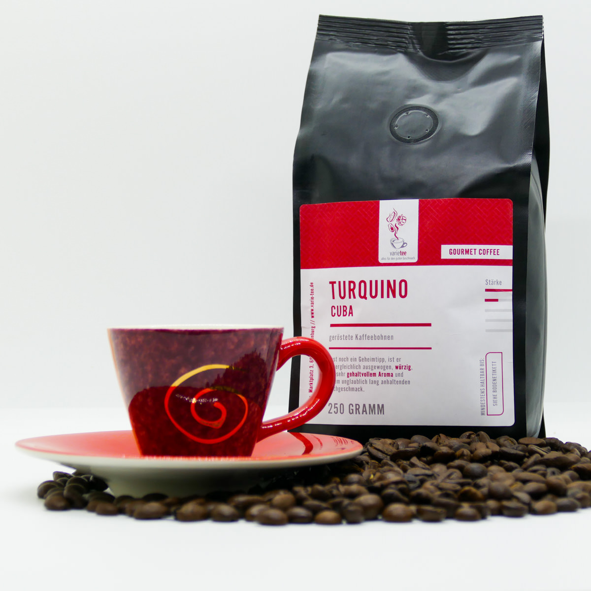 Der beste kubanische Kaffee ist der Turquino. Fast noch ein Geheimtipp, ist er unvergleichlich ausgewogen, würzig, mit sehr gehaltvollem Aroma und einem unglaublich lang anhaltenden Nachgeschmack. Er wird in tieferen Lagen angebaut, aus diesem Grund ist er säurearmer als andere mittelamerikanische Kaffees. Ein rassiger und eigenwilliger Kaffee für echt Gourmets, dessen Bouquet und Geschmack an den Charakter berühmter kubanischer Zigarren erinnert. Das Bohnenbild ist von sehr einheitlicher mittel- bis dunkelbrauner Farbe. Der Cuba Turquino wird von Kennern häufig in einem Atemzug mit dem Blue Mountain aus Jamaica und dem Kona aus Hawaii genannt.